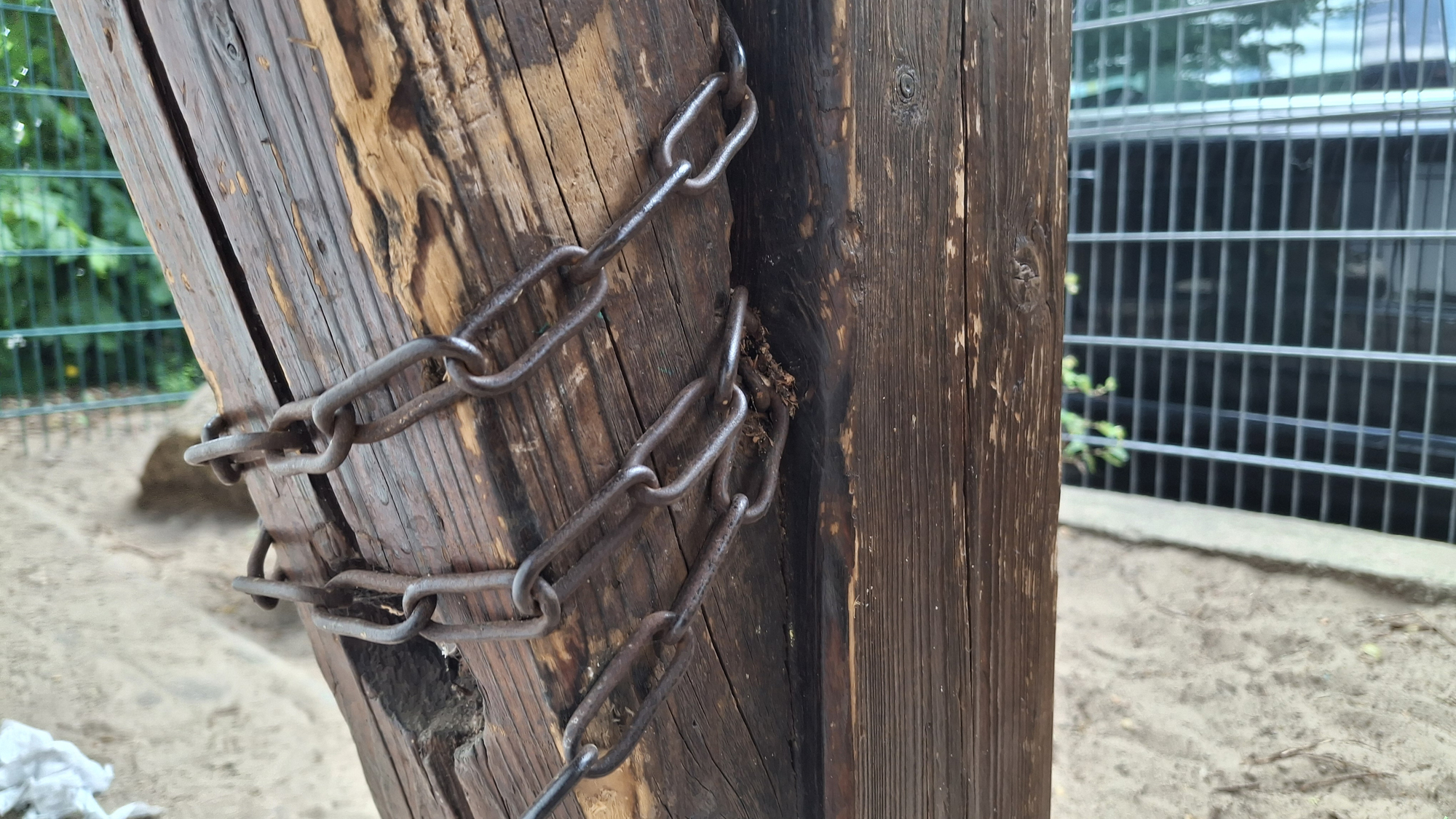 Es ist diese Kette unter dem Schleppdach auf dem Schulhof.
