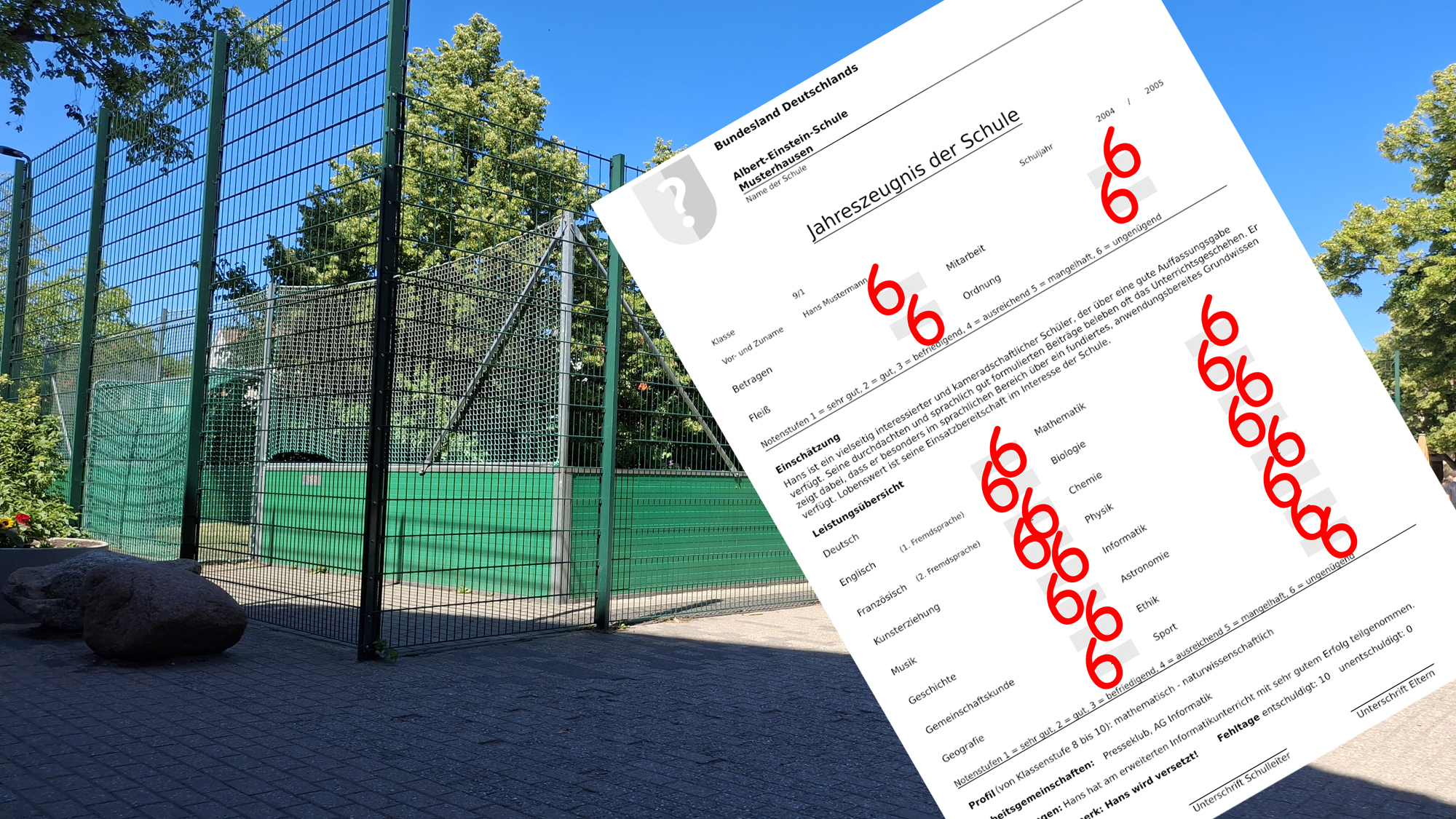 Nur Sechsen auf dem Zeugnis - auf Wiedersehen!
