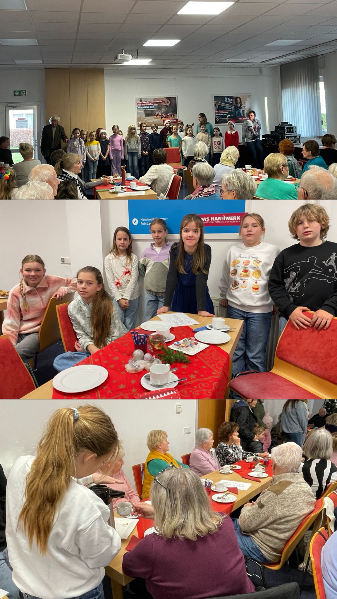 Ein besonderer Höhepunkt war der musikalische Beitrag unserer Sängerinnen und Sänger aus dem dritten Jahrgang unter der Leitung von Frau Hoßfeld. Die Senioren konnten den weihnachtlichen Klängen lauschen und sogar ein Solo-Gitarrenspiel einer Drittklässlerin bestaunen. Am Ende gab es für alle fleißigen Helfer und Sänger großen Applaus und kleine Süßigkeiten als Dankeschön.